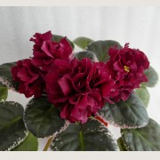 Очень крупные п/м и махровые черно-вишнево красные звезды на крепких цветоносах темно-зеленая слегка удлиненная листва.